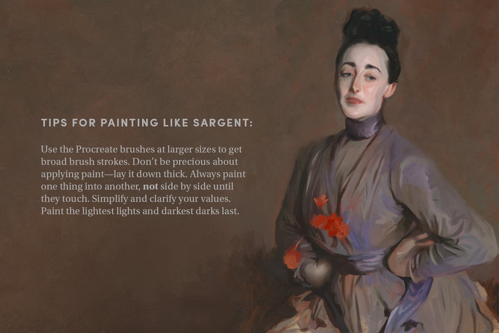 John Singer Sargent is a master Realist painter from the era of Impressionism and his work has been an inspiration to me for a long time. I enjoy painting in his style so I handcrafted brushes for Procreate that help achieve the same look.